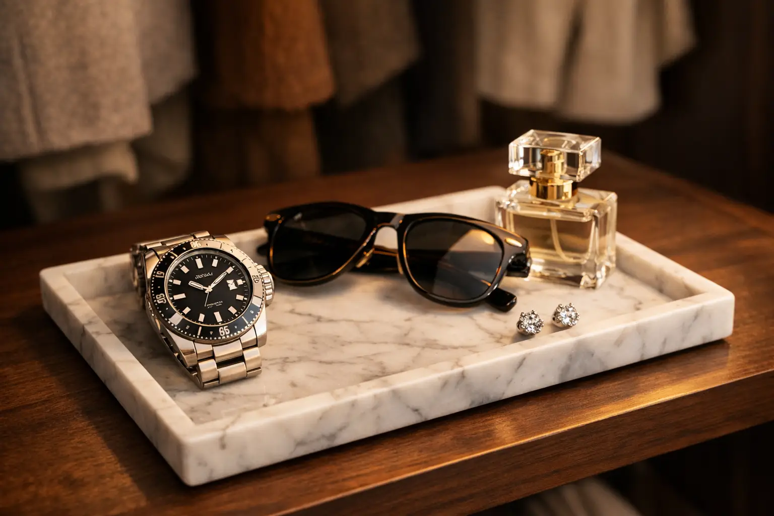An accessory display tray is the perfect way to organize your daily essentials like watches, sunglasses, and keys. Placing a beautiful tray on a shelf or a central island adds a touch of sophistication to your closet. This organized drop zone helps you stay efficient during your morning routine because everything you need is in one place.