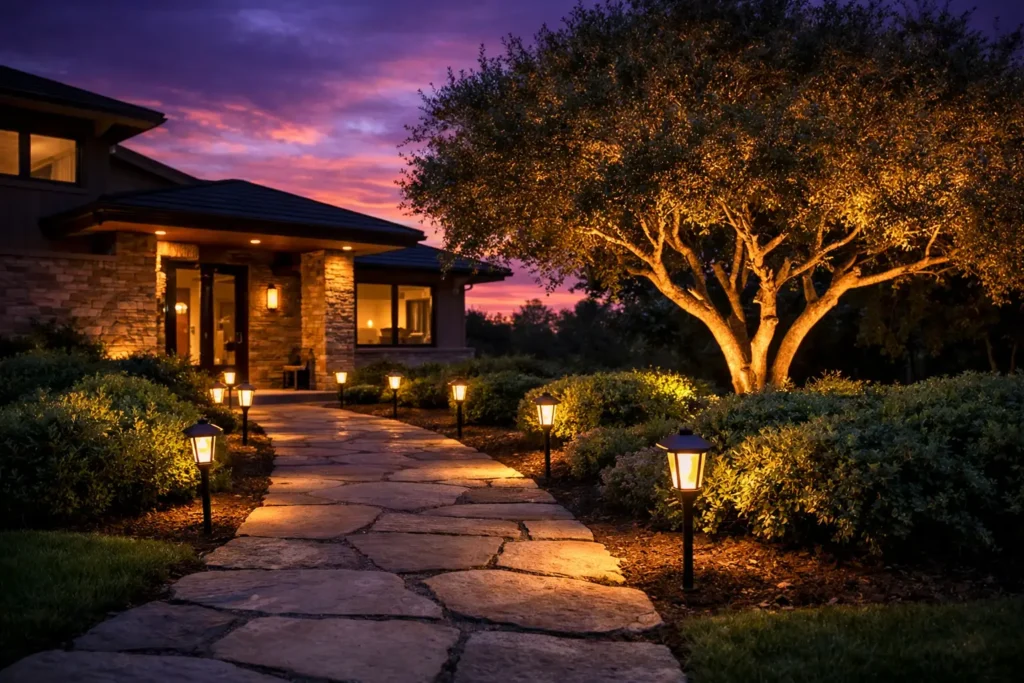 Landscape lighting is one of the most underused tools in front yard design, yet it delivers one of the highest returns. Solar-powered path lights placed along the walkway improve safety while highlighting your plantings. Uplighting on a statement tree or architectural feature adds drama after dark and makes your home look polished even during evening hours. Choose fixtures that complement your home’s architectural style for a cohesive and finished appearance.