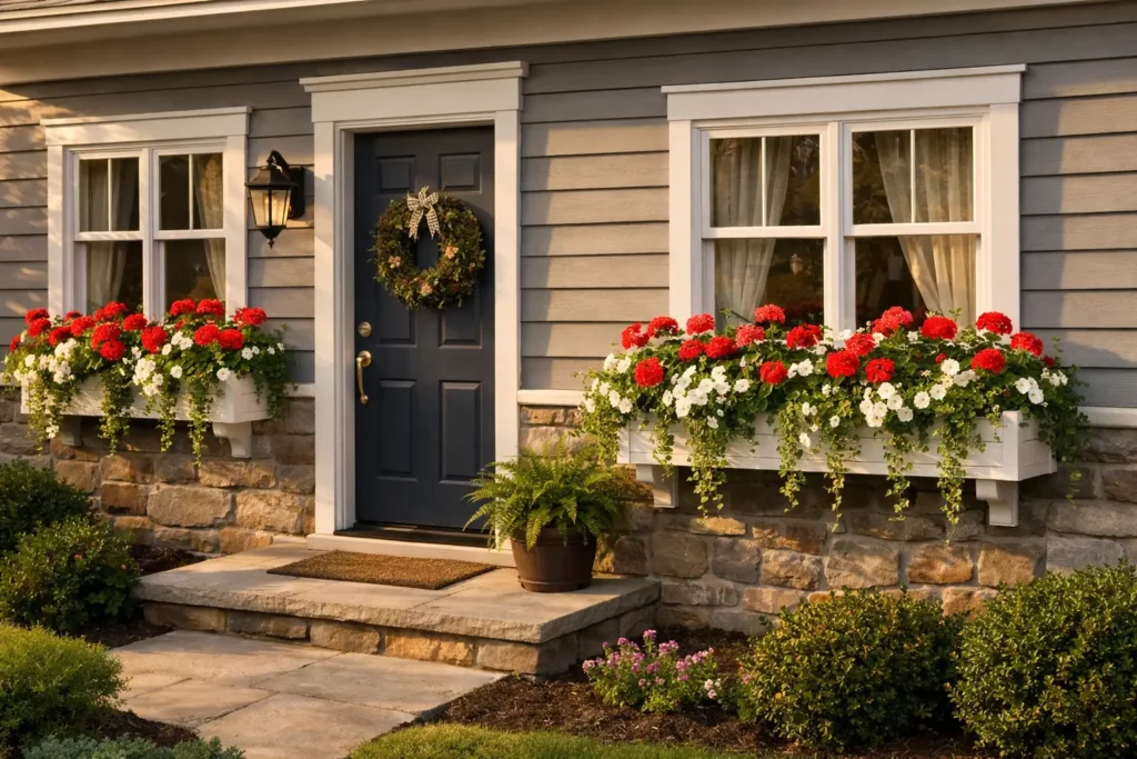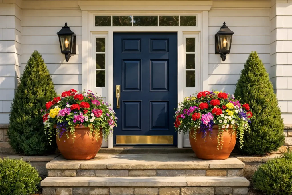 Your front entry should command attention and feel inviting. Create a focal point by flanking your front door with matching planters filled with seasonal flowers or evergreens. A decorative urn, a small topiary, or a statement-making door color can also anchor the entryway and draw the eye naturally toward the entrance. This detail alone can make a significant difference in how your home is perceived from the street.
