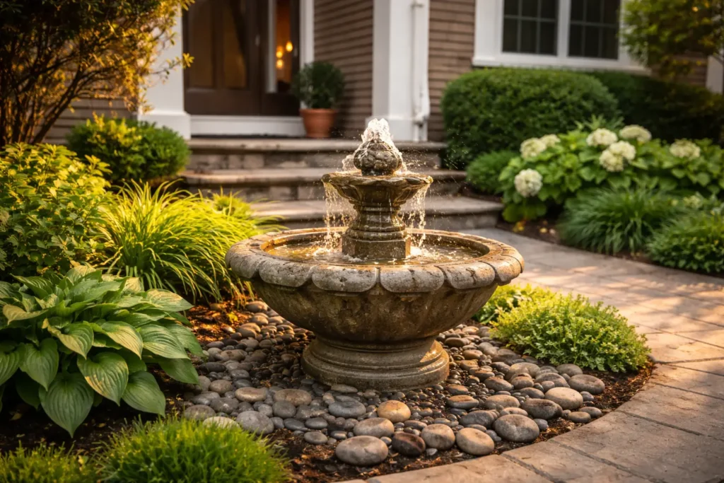 A small fountain, pond, or bubbling urn adds both sound and movement to your front yard, creating a sensory experience that makes your property feel calm and luxurious. Water features act as natural focal points, drawing the eye and giving your landscape a resort-like quality. Even a modest self-contained fountain installed near the front entry can dramatically elevate the overall feel of your outdoor space.