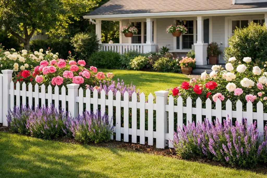 A low picket fence, wrought iron railing, or stone garden wall adds structure and definition to your front yard while creating a sense of enclosure without blocking views. Pair a classic white fence with lush rose bushes or lavender for a timeless cottage garden look. A stone retaining wall on a sloped property not only adds visual interest but also serves an important functional purpose in controlling erosion.