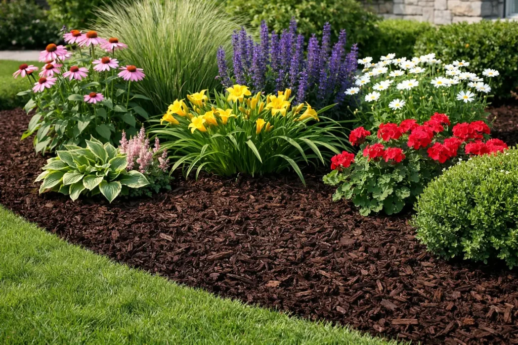 Fresh mulch is one of the most affordable ways to instantly improve the appearance of your front yard. A two to three inch layer of shredded bark or wood chip mulch in your flower beds retains moisture, suppresses weeds, and gives the entire garden a clean, finished look. Dark mulch creates a striking contrast against colorful plants and green foliage, making everything look brighter and more intentional.