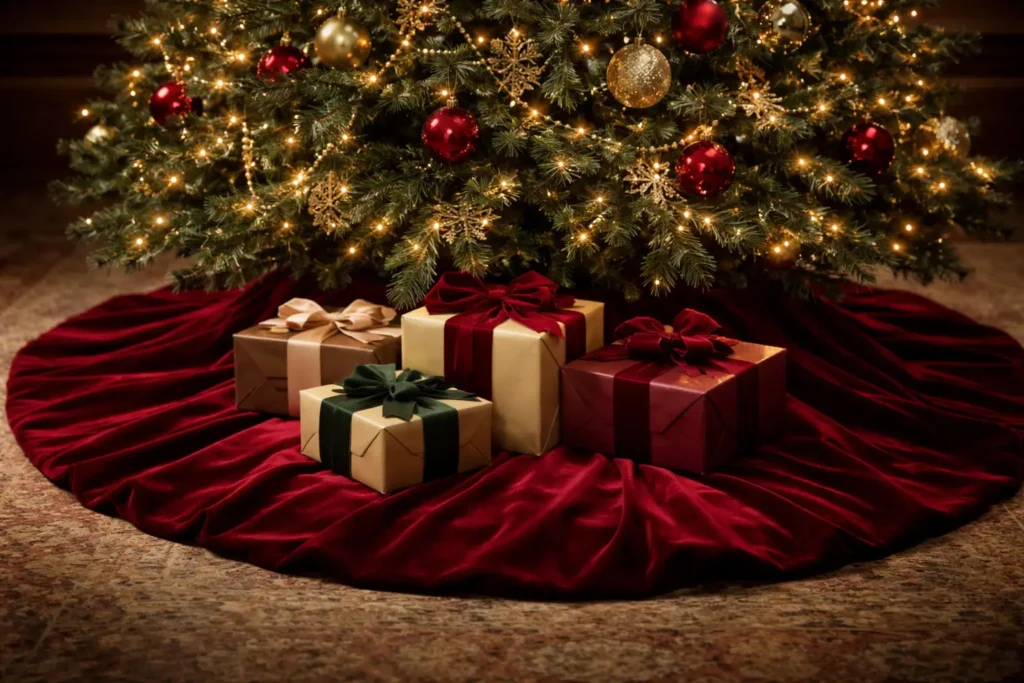The base of your tree deserves as much attention as the top. A deep velvet tree skirt in rich red, forest green, or midnight navy grounds the entire display and ties your color story together. Look for tree skirts with a slight sheen or embroidered detailing to add an extra layer of visual interest. Placing a few wrapped gifts in coordinating velvet ribbon on top of the skirt completes the picture perfectly.