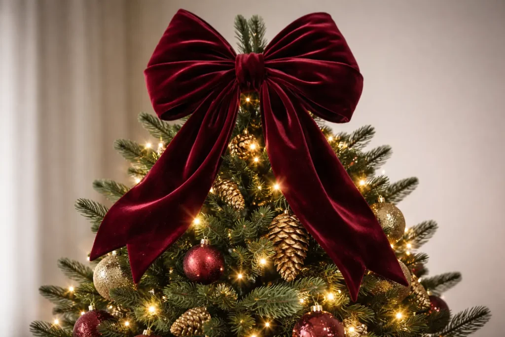 Do not overlook the top of your tree when planning your velvet theme. A large velvet bow in a coordinating color makes for a stunning tree topper that feels fresh and modern compared to traditional star or angel toppers. For maximum impact, choose a ribbon that is four to six inches wide and tie it into a full, voluminous bow that fans out beautifully above the uppermost branches.