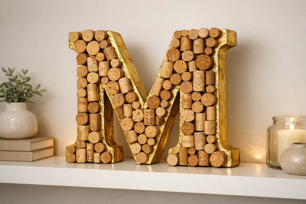 Purchase a wooden letter from a craft store, paint the surface in a metallic or complementary shade, and then hot glue wine corks across the face of the letter in varying heights and widths. The textured, three-dimensional result is stunning as wall decor or as a personalized gift for a housewarming, wedding, or birthday.