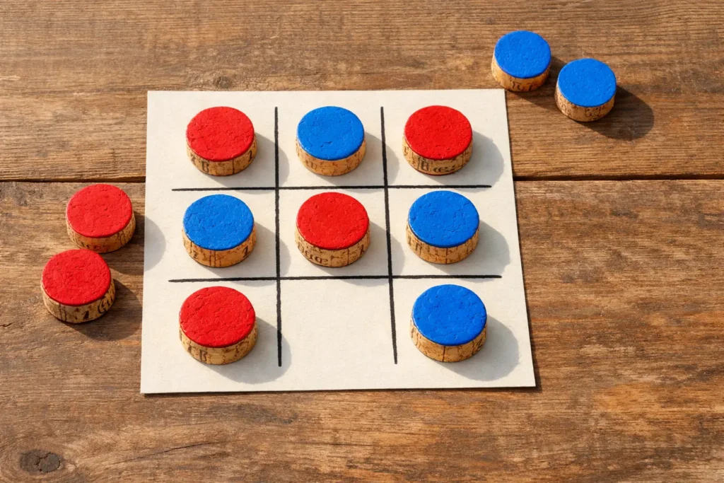 Cut wine corks into flat rounds and use two sets of them painted in different colors as the game pieces. Draw a grid on a small piece of wood or heavy card stock and you have a complete, functional game. This is a particularly lovely wine cork craft to make with children and a natural conversation piece at casual gatherings.