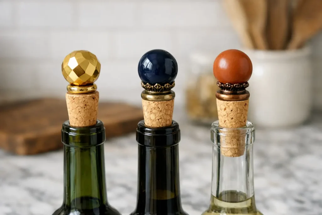 Take a large decorative bead, a figurine topper, or a painted wood piece and insert a short dowel into it, then press the dowel into the top of a wine cork. The resulting bottle stopper keeps your wine fresh after opening and looks attractive displayed on a kitchen counter or bar cart. These also make some of the most appreciated homemade gifts for wine enthusiasts.